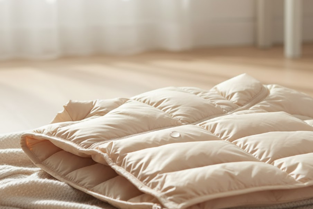 - 충전재 살리기: 완전히 건조된 후에는 손바닥으로 패딩 전체를 가볍게 톡톡 두드려 뭉친 충전재를 풀어주고 공기를 주입하여 볼륨감을 되살려줍니다.